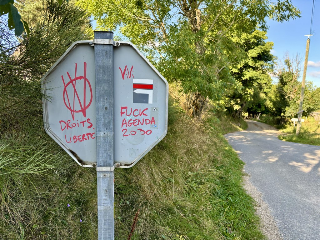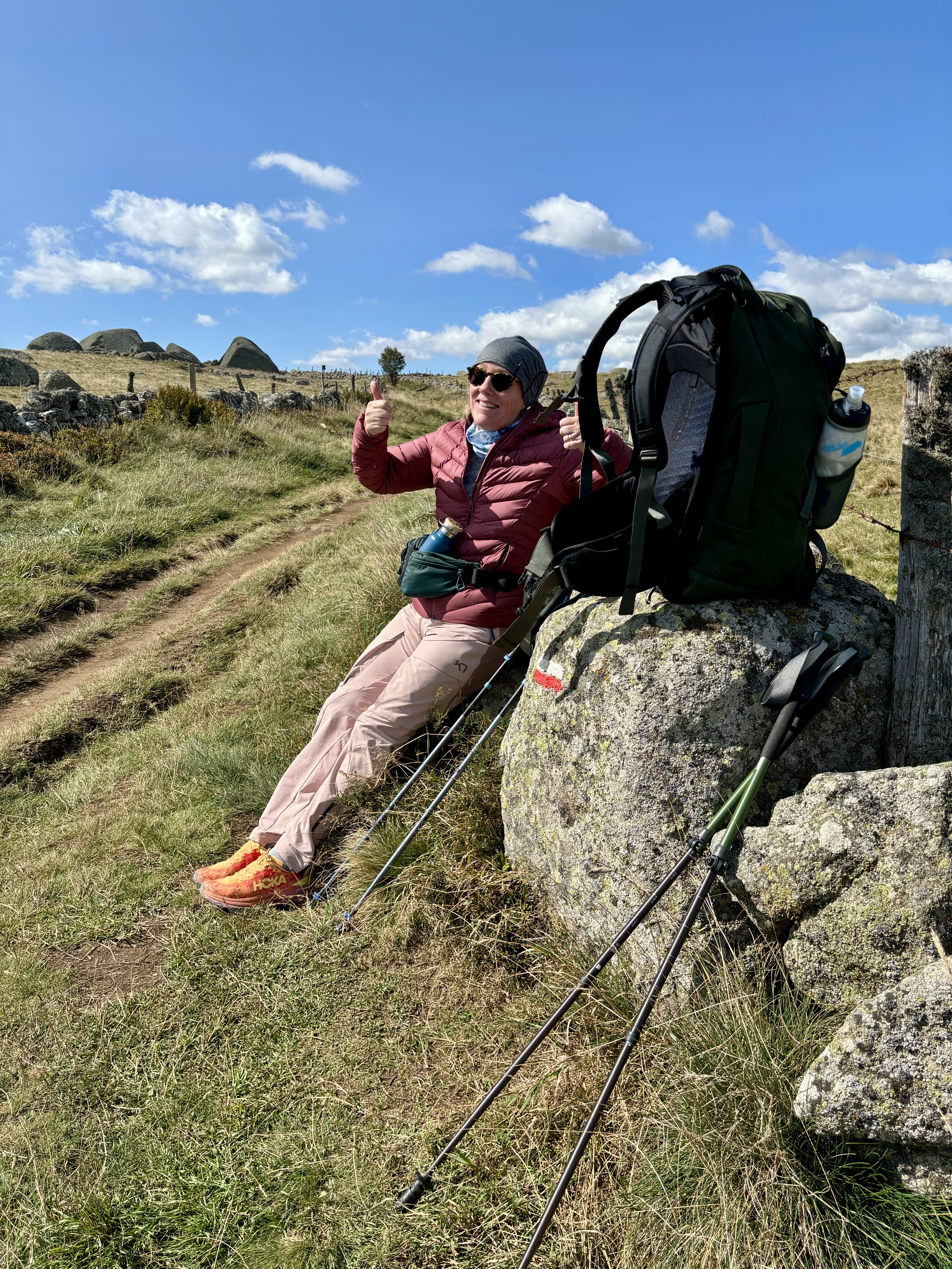 There were considerably more fellow walkers today, making ‘passing protocol’ awkward at times, especially with long stretches of narrow trail – we went around singles, split couples, clacked our poles in warning… it being le samedi, day-trippers (in gaggles) were out in force. Also, we’ve learned this area is the confluence of 2-3 other major hiking routes, so, a cavalcade it was at times!