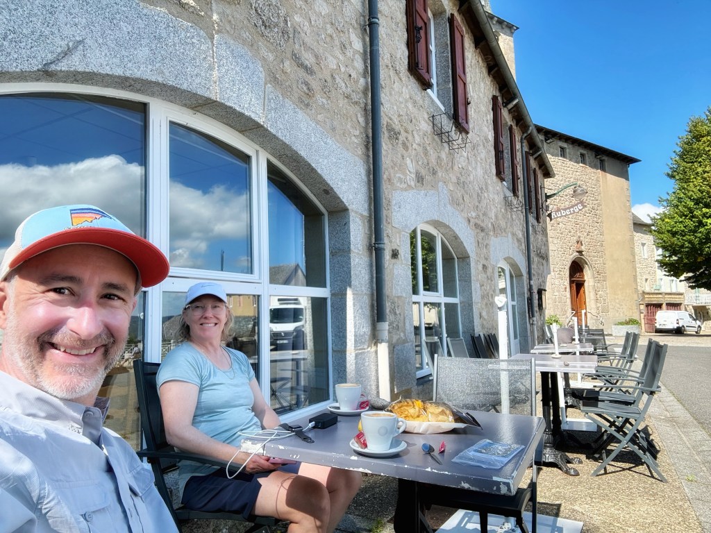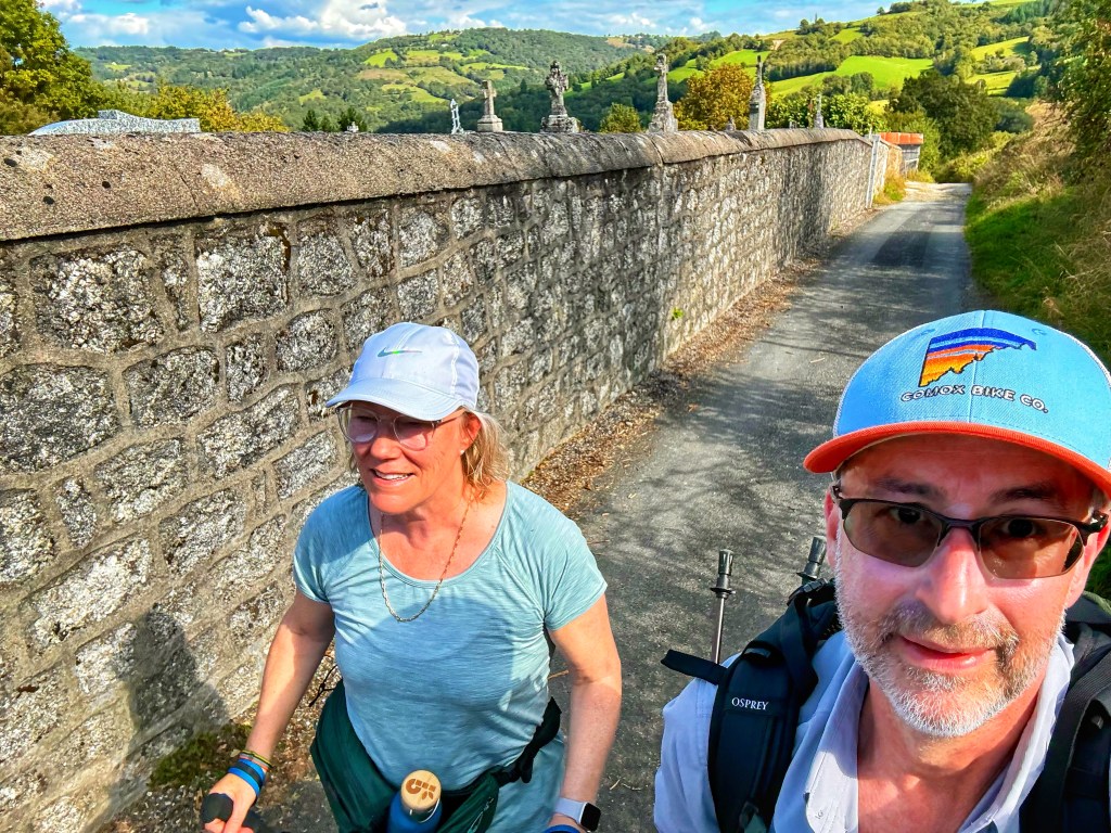 The panoramas remained sensational enough to ignore our below-knee irritation for a while. We took a couple of breaks to air the feets and top up our fuel tanks, as other pilgrims talked of their approaching gîtes. We started questioning why we didn’t book into Golinhac, Espeyrac or especially Le Soulié, as ours were creaking under the pressure!