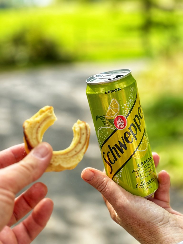 Even 20 degrees felt blazing and, for the first time, we refreshed at every public tap / fountain. A camper-van lady extracted a small ransom for some kind of barbecue’d waffle and a flavoured ginger ale.