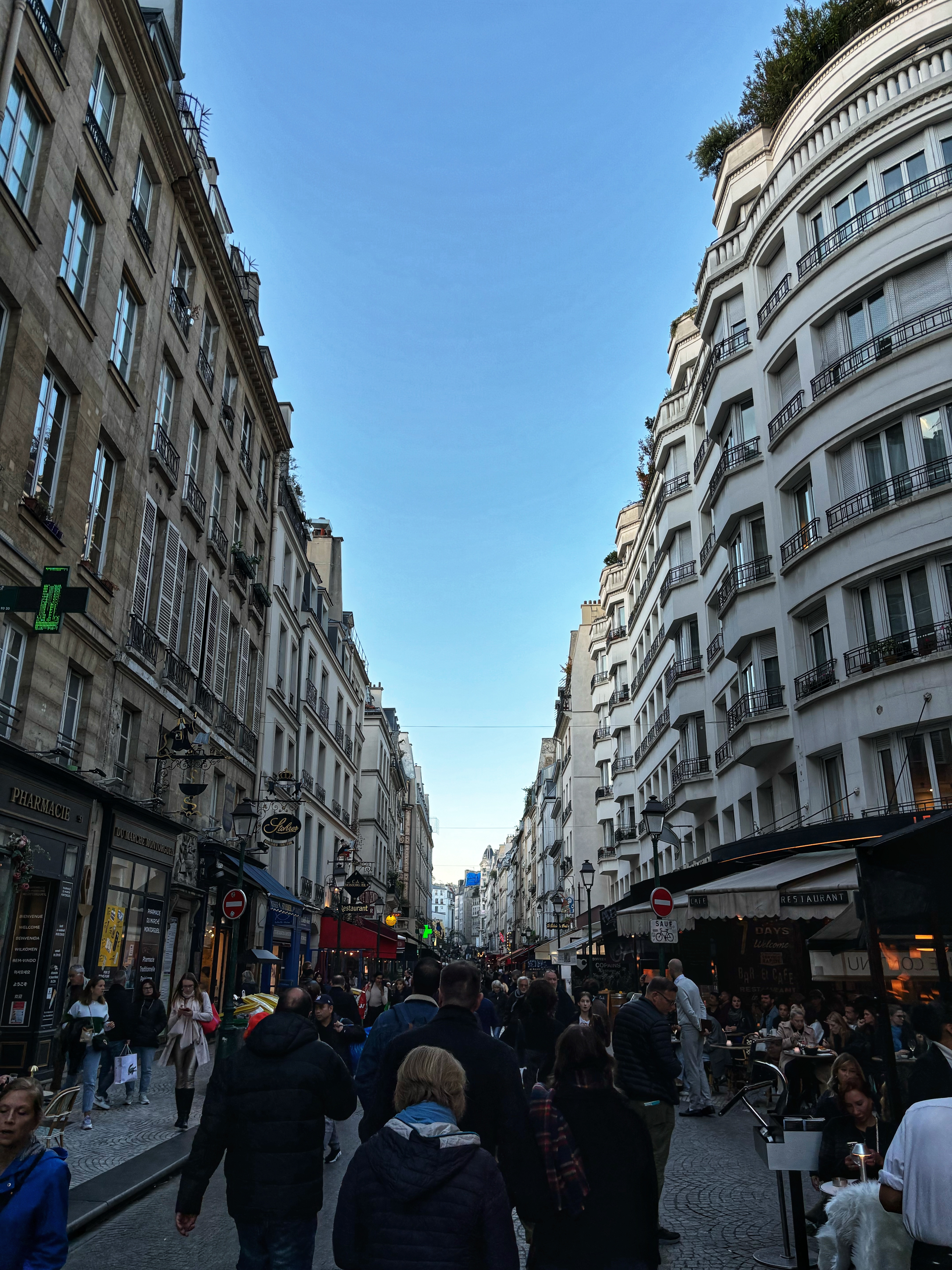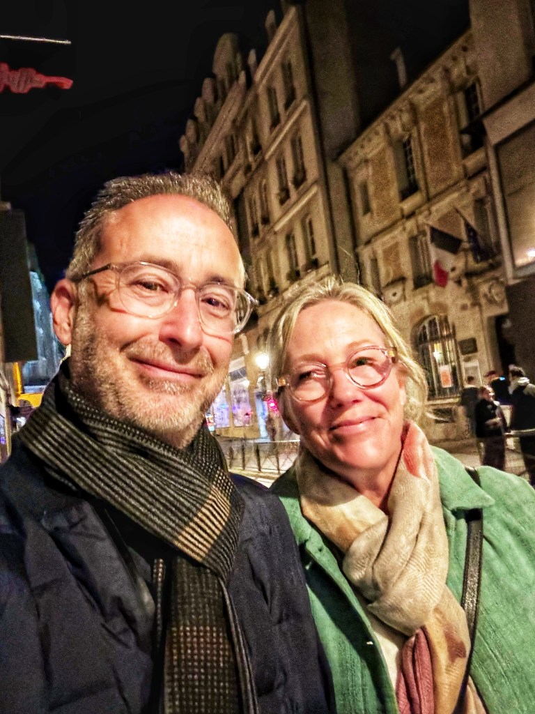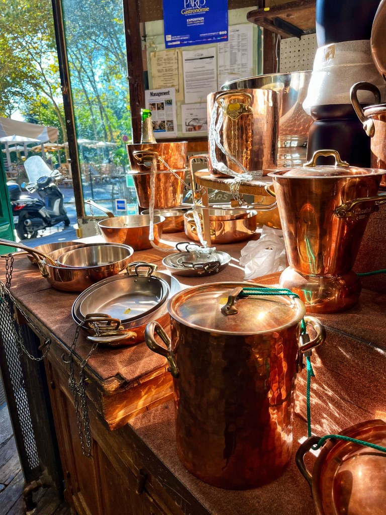 Rue Montorgueil is our street of memories and was teeming with all of fashionable humanity. We dined inside and gaped at the neighbouring table’s raclette fondue, oozing under a wedged heater.
