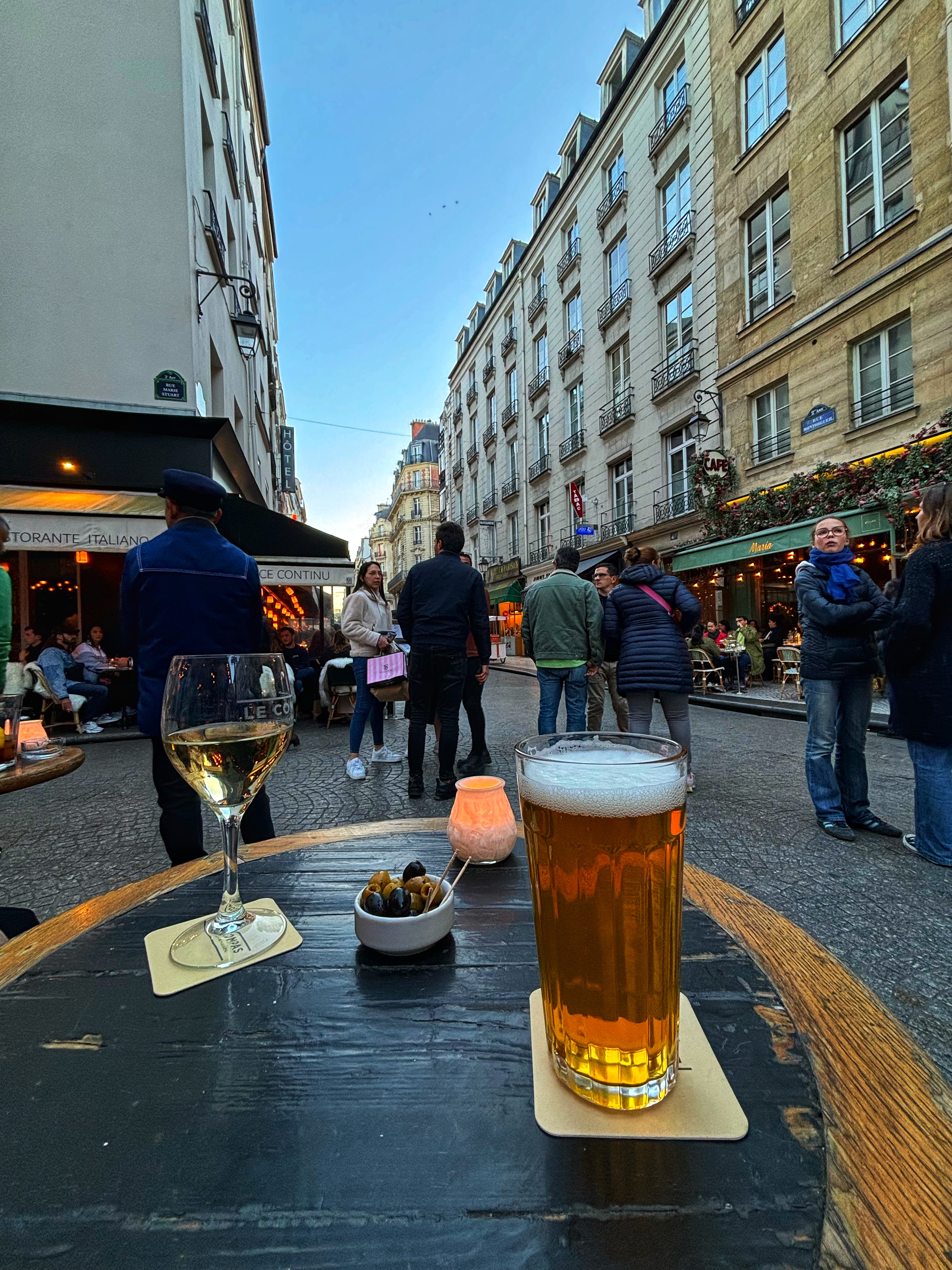 We were the most unrushed patrons dining in the Gare de Lyon. From there, we found a viaduct with a skyline walk. As we approached our home base, via the Bastille and Marais, the crowds thickened to the point of discomfort – people seem to like this city 😉
